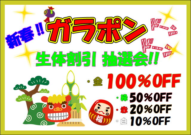 明日も福袋販売&生体割引ガラポン抽選会を開催しておりますので