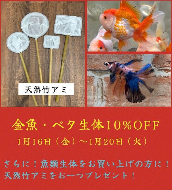 しかも!20日(火)までは金魚&ベタ生体が10%OFF‼️