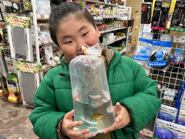 大好きな金魚を持って記念写真もバッチリやね~📸✨